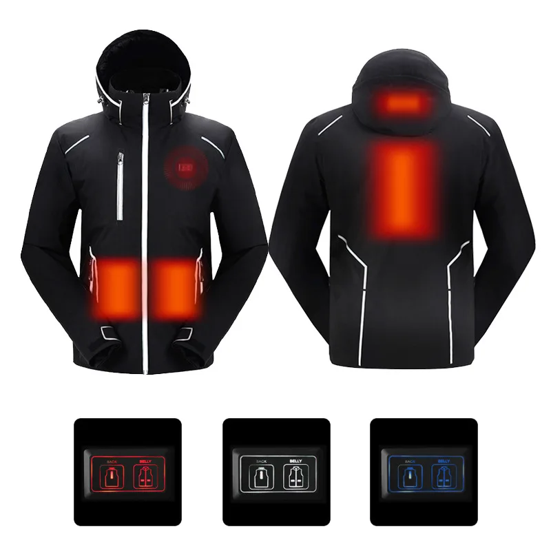 2019 Men Winter Ski Suit USB Heated Hooded Jacket Male Outdoor Waterproof Windproof Breathable Ther
