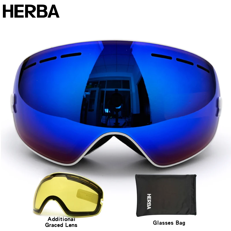 New HERBA brand ski goggles double UV400 anti-fog big ski mask glasses skiing men women snow snowbo
