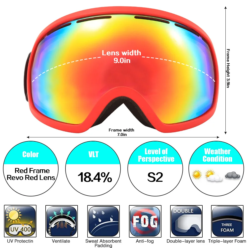 Ski Goggles Winter Snow Sports Snowboard Goggles with Anti-fog UV Protection Anti-fog Spherical ski