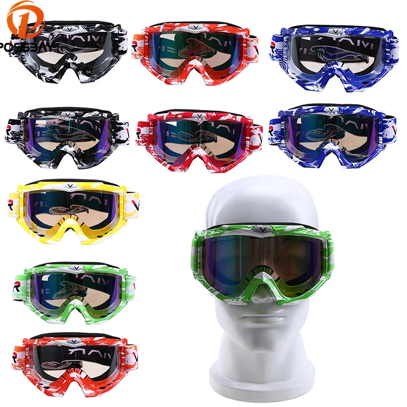 POSSBAY Adjustable Motorcycle Goggles Mask Bike Motocross MX Goggles Helmets Ski Snowboard Gafas Sk